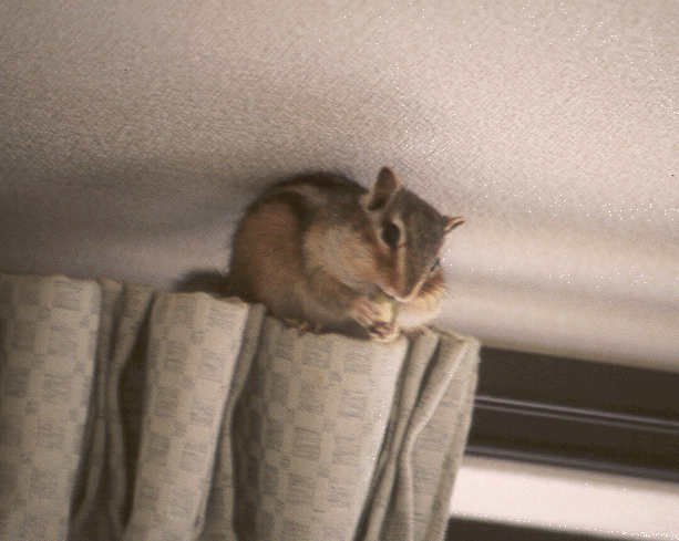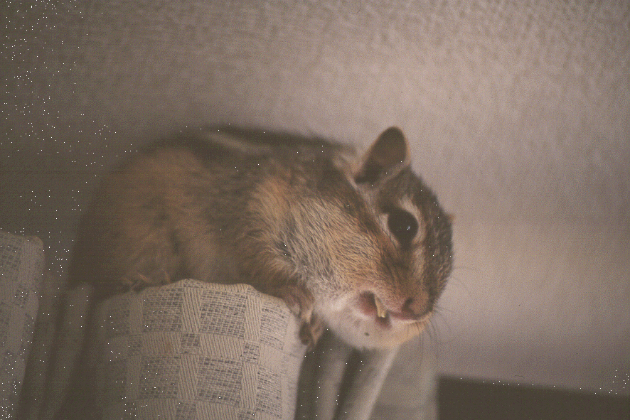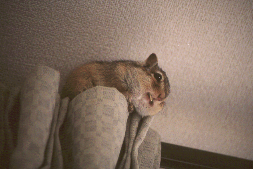 ワルワルな表情のちび。よーく見るとしっぽの半分がハゲちゃびん。こどもの毛から大人の毛に生え替わりはじめたものの、しっぽだけ途中で止まってしまい、この状態が今年の5月まで続いた。シマリスのシンボルともいえるフサフサしっぽとは程遠い痛々しいしっぽ。一度獣医さんで診てもらったけど、(?_?)どうかな?って思った。「真菌」なんていないぞ!ましてや、「白癬菌」?(水虫の菌のこと)・・・とりあえず、病名つけているのが分かってしまった。飲み薬や塗り薬をもらったけど、ちびには毒だと判断し、家では何の処置もしなかった。 しばらくして、ちょろちょろ毛が生えてきた。これが5月。だいたいにおいて、ちびは好きなもの旬のものしか口にしないので「栄養の偏り」が原因かと思っていた。毛が生えはじめる少し前に食べた「黒ゴマのパウンドケーキ」(生協で購入)か、「早生の生トウモロコシ」(4月頃、売ってなくて探すのが大変だった。輸入してくれるようスーパーに頼んだこともあった。)がしっぽの血流改善?にでもなって、ぐんぐん毛が生えてきたのだろうか。 |