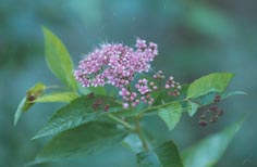 シモツケ 初夏の山の花の代表格。明るい岩場など好む種類が多い。蛇紋岩や石灰岩地帯といった過酷な場所に強い。 |