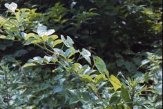 | トコロ ノイバラの上をとり、葉を広げる。 ノイバラは不本意な日傘を差さ れてしまった。 |
