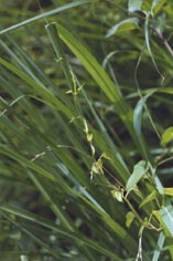 ヤマノイモ 巻き付けるものは何でも利用する。 ススキの葉をとらえた。 |