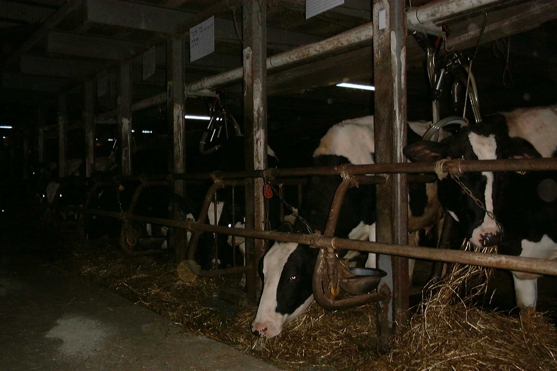 当該農場は写真(イタリアンロールの飽食)のとおり以前から自給飼料依存型の酪農飼養形態でした。自給飼料は、ほぼ通年のイタリアンロールあるいはえん麦ロール、ホールクロップトウモロコシサイレージです。つまり、大地を活用した飼育管理でした。人間の都合で牛本来の姿を無視した酪農が行われた結果がBSE発生といわれていますが、、、。